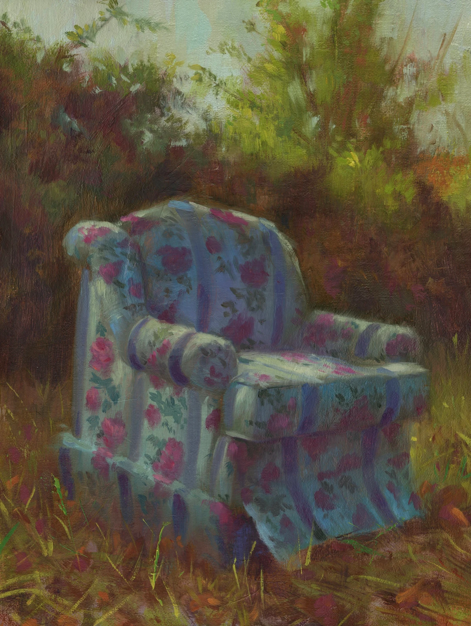 As I’ve been working on larger paintings I took a detour and began exploring a new series of works exploring discarded items . At the moment I’ve been focused on thrown away chairs / couches but it’s early in development so anything can happen .